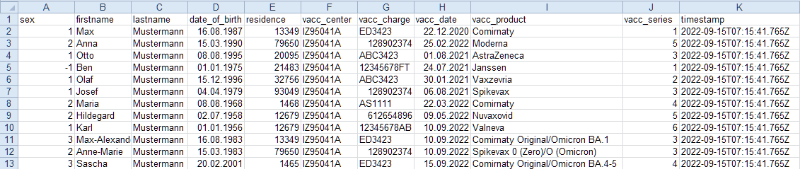 die Reihenfolge der Spalten ist unerheblich, gerade habe ich einen Impfling (versuchsweise aber) erfolgreich hochgeladen. (Ich hoffe das uns das aber zukünftig erspart bleibt)