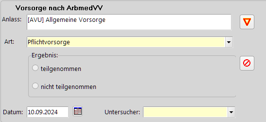 Wenn in der Probandenkartei eine Vorsorge geplant ist, und ich ändere bei dieser Vorsorge über den Button rechts neben "Anlass" den Vorsorgeanlass, dann wird die Vorsorgeart immer auf "Pflichtvorsorge" geändert, auch dann, wenn der neue Vorsorgeanlass unter Einstellungen->Kartei->Bescheinigungen explizit als "Angebotsvorsorge" oder "Wunschvorsorge" definiert ist.