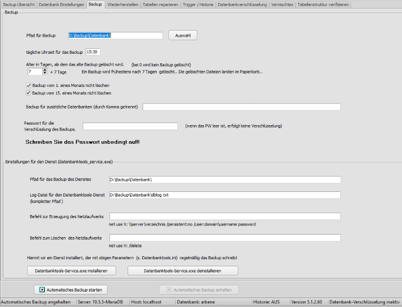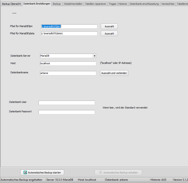 Was geschieht wenn das Backup aus Arbene heraus ausgeführt wird (s. Einstellungen)?