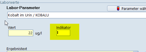 Markierung der Laborwerte im Karteibaum, wenn erhöht/erniedrigt