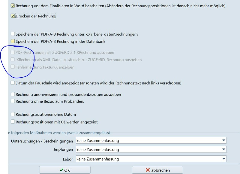 XRechnungen sind nur bei den Firmen-Rechnungen möglich, da bei diesen die dafür notwendigen Zusatzinfos hinterlegt werden können - deshalb ausgegraut.