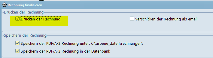 Die Rechnung darf deshalb nicht aus Word heraus gedruckt werden, sondern es muss der Arbene-Dialog verwendet werden.