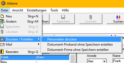Es lassen sich alle Firmen- und Probanden-Formulare ohne anschließendes Speichern in Arbene öffnen und dann drucken, für die Probanden gibt´s hierfür ein eigenes Formular bzw. Menüpunkt.