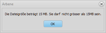 2. Beim Versuch, eine 14,5 MB große PDF-Datei zu importieren, kam folgende kurios anmutende Fehlermeldung: