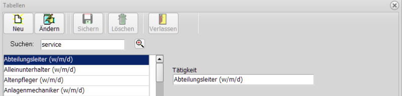 2. Bei der Einstellung -> Stammdaten -> Probanden-Listen -> Tätigkeiten zeigte sich, daß das Feld für Tätigkeiten nur Eingaben bis zu 40 Zeichen zulässt. Leider werden die in den letzten Jahren definierten neueren Berufs- und Tätigkeitsbezeichnungen immer länger (z.B. "Elektroniker (w/m/d) für Gebäudesystemintegration", und das ist noch nicht die längste Bezeichnung, aber eine von den vielen, die nicht reinpasst). Deshalb würde ich Dich bitten, die Feldlänge auf 100 Zeichen zu erhöhen.