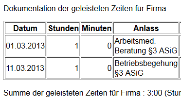 Zeiterfassung Ausgabe