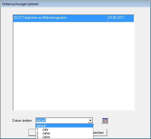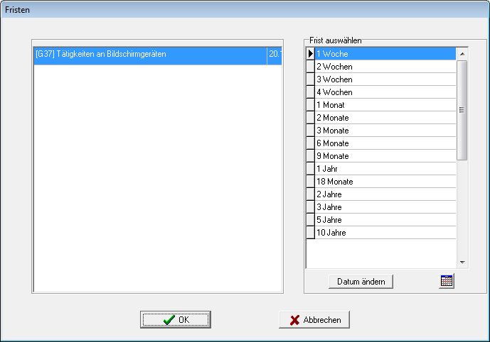 2. Außerdem fände ich es sehr praktisch, wenn in der Spalte "Frist auswählen" bereits die Zeile markiert ist, die der Voreinstellung für die Nachuntersuchungsfrist für diese Bescheinigung gemäß Einstellungen -> Kartei -> Bescheinigungen -> Nachuntersuchung entspricht.