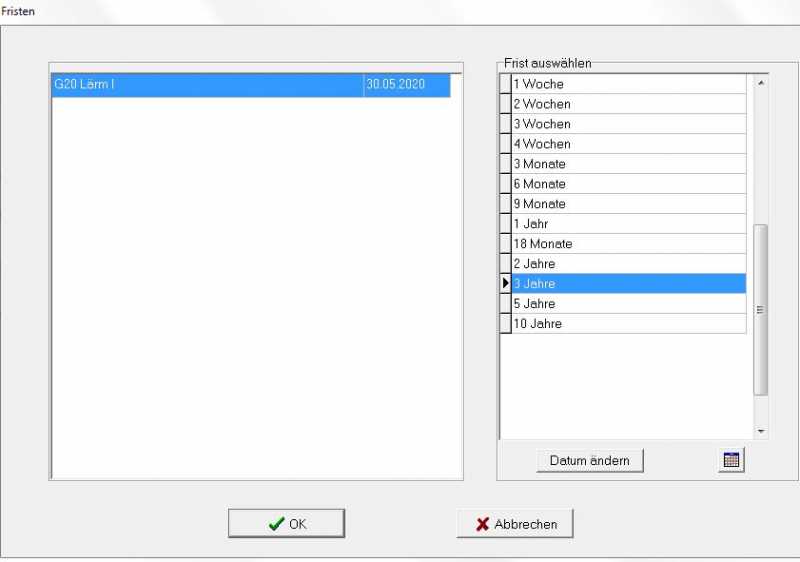 die unter Einstellungen -> Stammdaten -> Fristen hinterlegten Zeiten zur Auswahl anbieten?