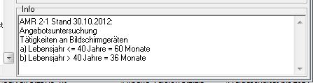 In dieses Freitext-Feld schreibe ich meistens die Kriterien und betriebsspezifische Absprachen für verschiedene Nachuntersuchungsfristen zur Erinnerung hinein, deswegen würde ich mich freuen, wenn es in diesem Dialogfenster mitangezeigt würde.