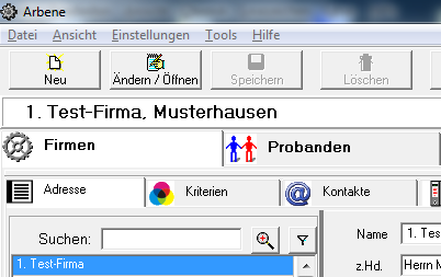 Unterhalb der Firmen- und Probanden-Liste würde ich mir eine Anzeige mit der Anzahl der angezeigten Datensätze wünschen, um besser eine Überblick zu behalten.
