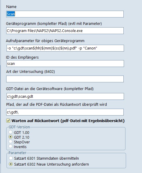 Aufrufparameter: -o "c:\gdt\scan$(hh)$(mm)$(ss)$(nn).pdf" -p "ProfilnameXXX"