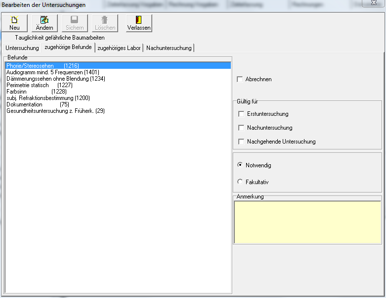 beim Anlegen einer neuen Untersuchungen über Einstellungen > Kartei > Vorsorge > Neu ist mir beim Anlegen der zugehörigen Befunde folgendes seltsames Verhalten aufgefallen: