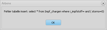 bei Arbene 6.0.28: Wenn ich einen neuen Impfstoff anlege, und dann versuche, dem eine Charge hinzuzufügen, kommt folgende Fehlermeldung und es lässt sich keine Charge anlegen: