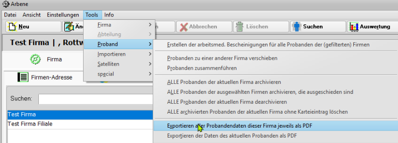 gibt es eine Möglichkeit die bei einer Firma untersuchten Probanten die pdf-Ergebnisse der Untersuchungen bei Kündigung der Betreuung dem folgenden Betriebsarzt zu übergeben ?