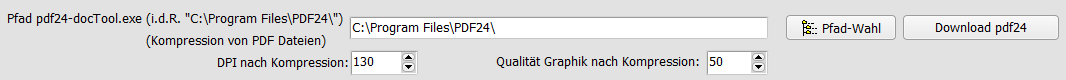 - Pfad für "pdf24": der Pfad wurde nicht korrekt gespeichert. Auf ein Fehlen der Installstion wird nur noch einmalig beim Programmstart hingewiesen.